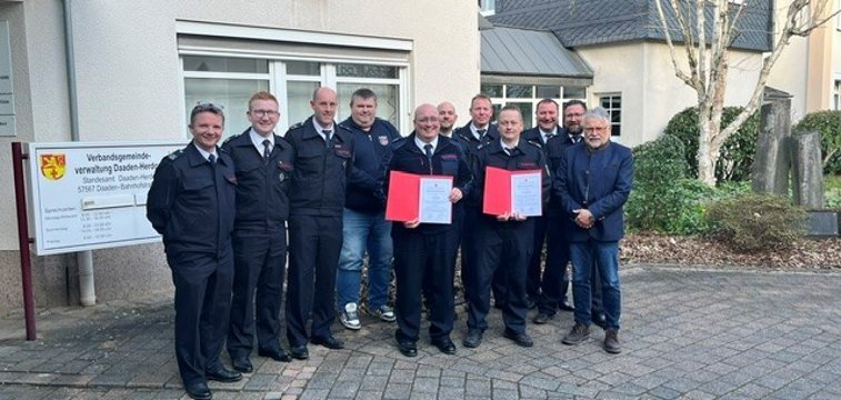 Seit geraumer Zeit leiten Matthias Theis und Heiko Lichtenthäler neben Markus Löhr ehrenamtlich und fachlich die Freiwillige Feuerwehr der Verbandsgemeinde Daaden-Herdorf. Ihre 10-jährige Amtszeit läuft zur Jahresmitte 2026 aus.